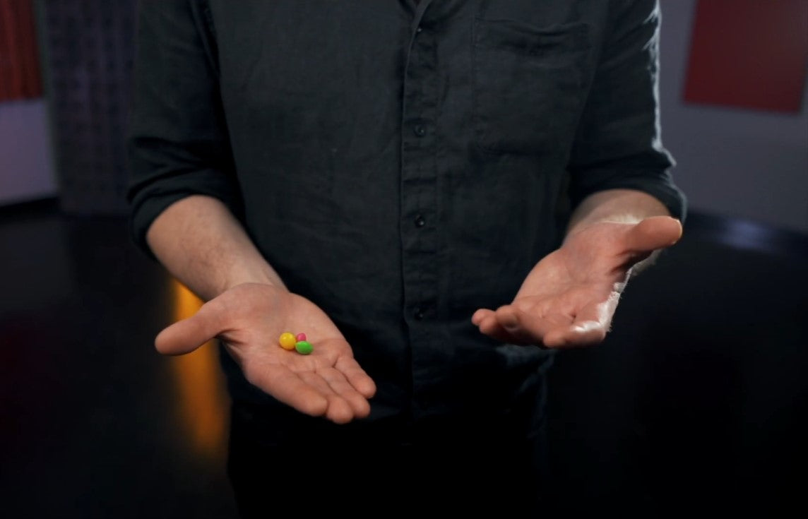 Imagine this. You take some candy, and make them all vanish in the fairest way possible. Then, your spectator feels them reappearing in their own hand. No, really - they can actually feel the candy materialize - one by one - in their open palm.