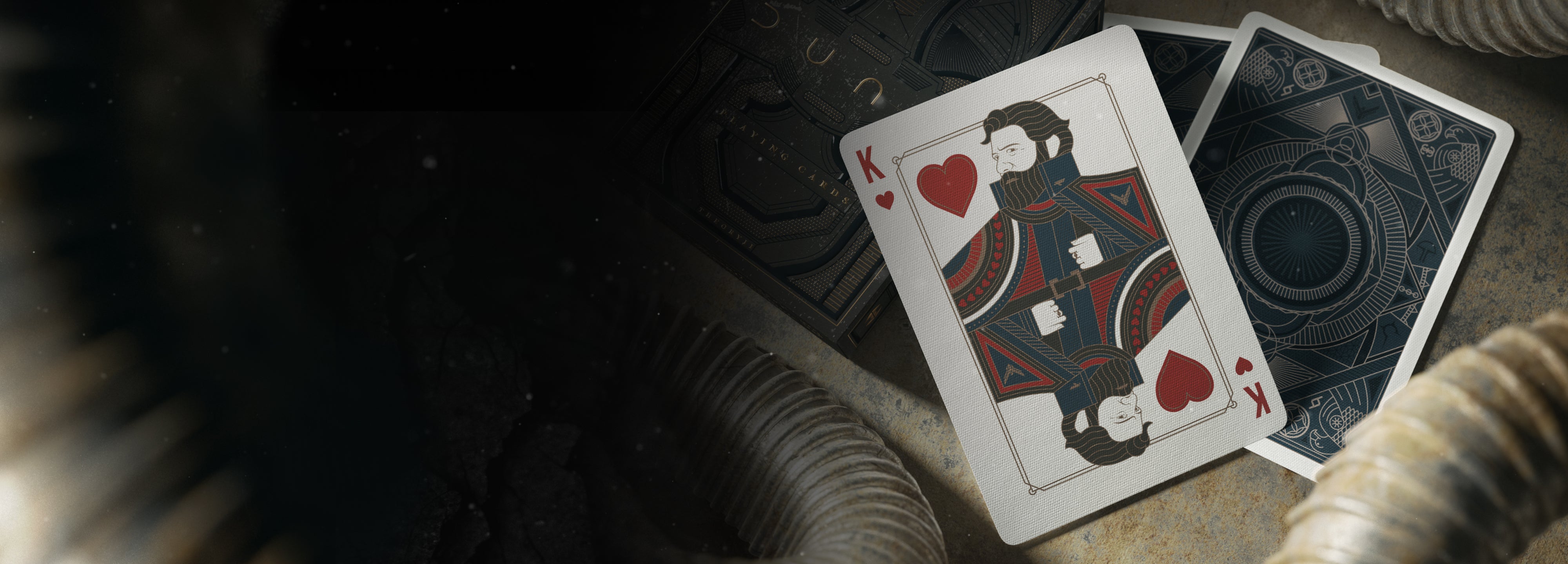 Dune Playing Cards feature completely custom artwork in every aspect of the design, with the Aces, Jokers, box design, & court cards inspired directly by fan-favorite characters and events in the critically-acclaimed film. Don’t stare too long at the back design, you might get devoured by the open mouth of the sandworm!